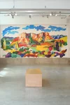 My mission in producing a large scale landscape was to invite visitors to step into my emotional response to the Western landscape. Pictures were encouraged, emulating the millions of scenic vacation photos travelers snap every year in front of scenic views.